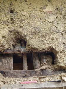 • The east wall was repaired with clay, but in patches where there were holes, and on the north wall there were also areas that needed repair.