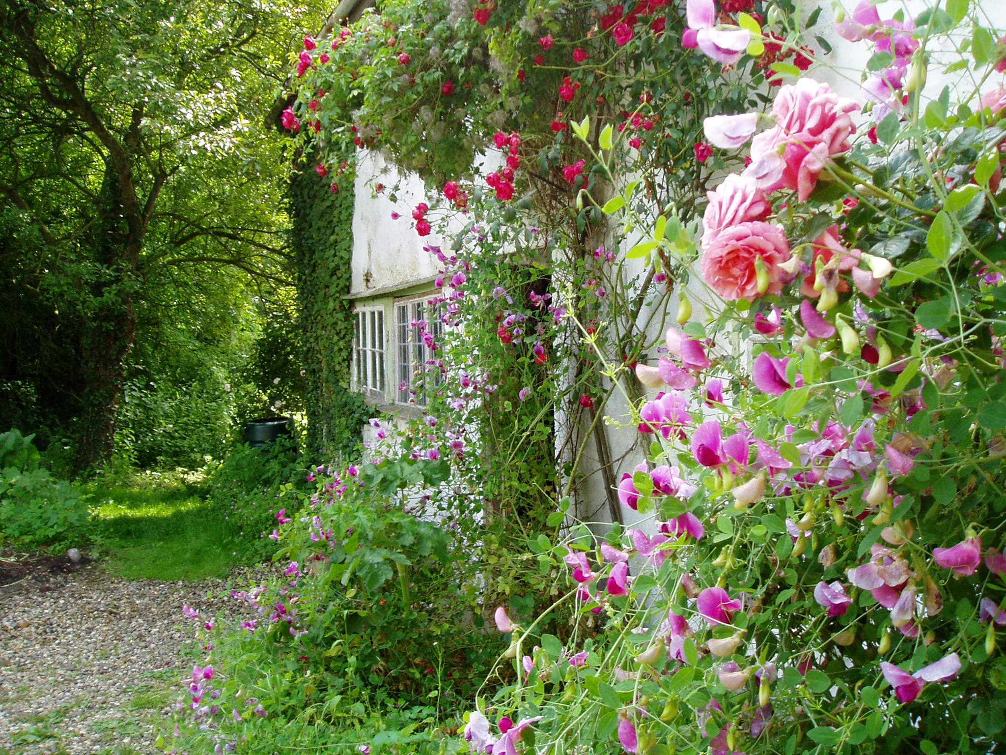 The front door, hidden by flowers – how we first saw it.