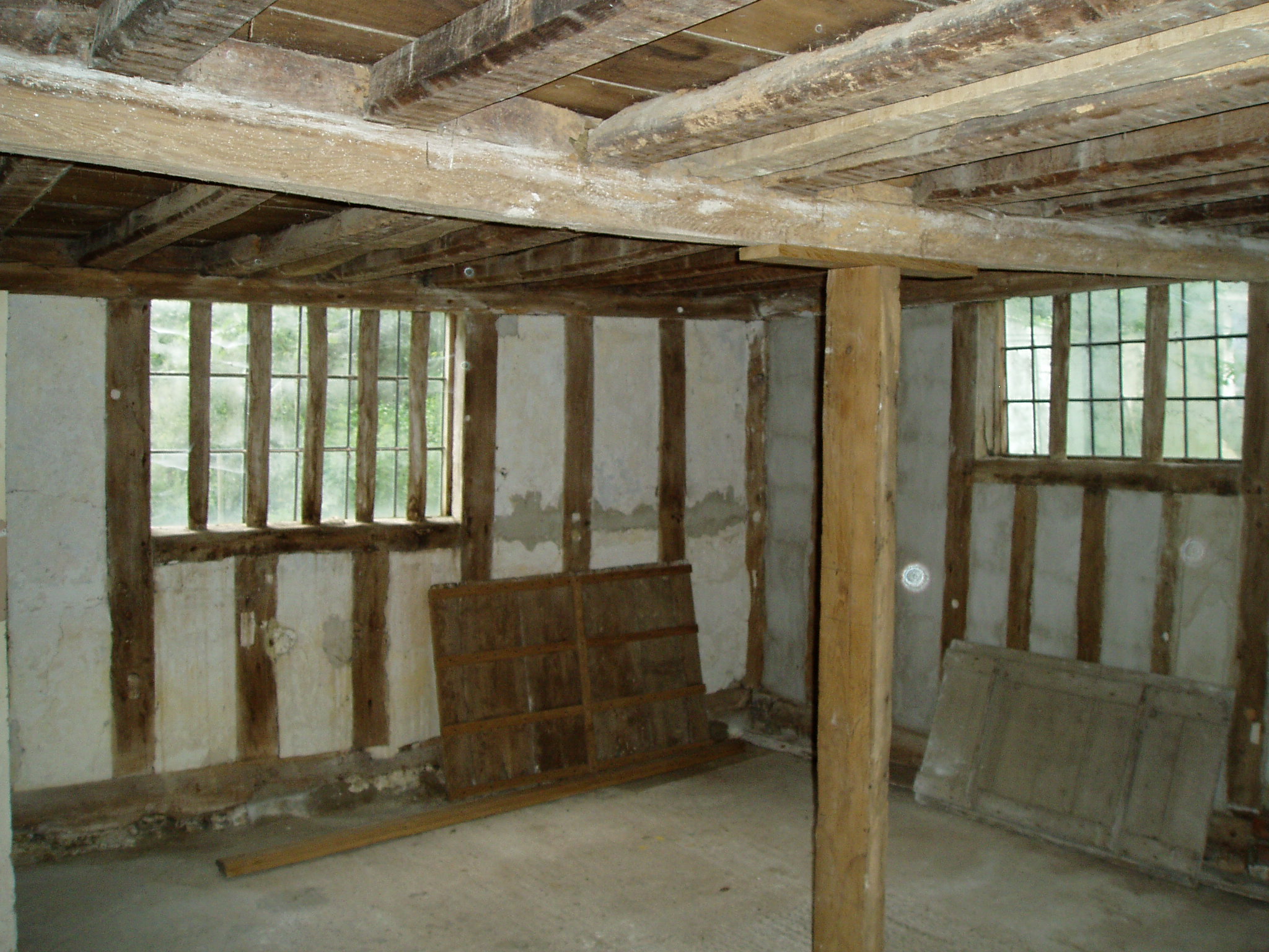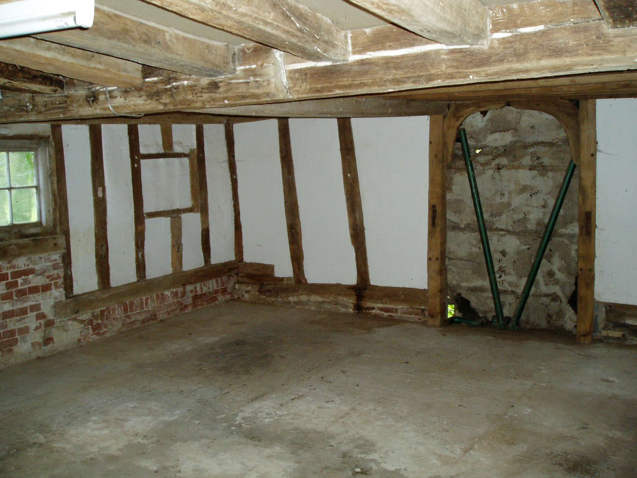 Considerable work was done in the 1980s by Paul and Ginny Broomhead, the previous owners, to preserve and adapt the building, but it was not finished. The building had been roughly repaired when it was owned by Rush Green Farm, whose farmhouse they bought in 1983 (now renamed Holm Oak House) along with what is now The Old Brewhouse. In particular, the south gable wall of The Old Brewhouse had been rendered in cement over chicken wire to make it watertight after the southern end of our building was demolished, which was some years before the Broomheads arrived.